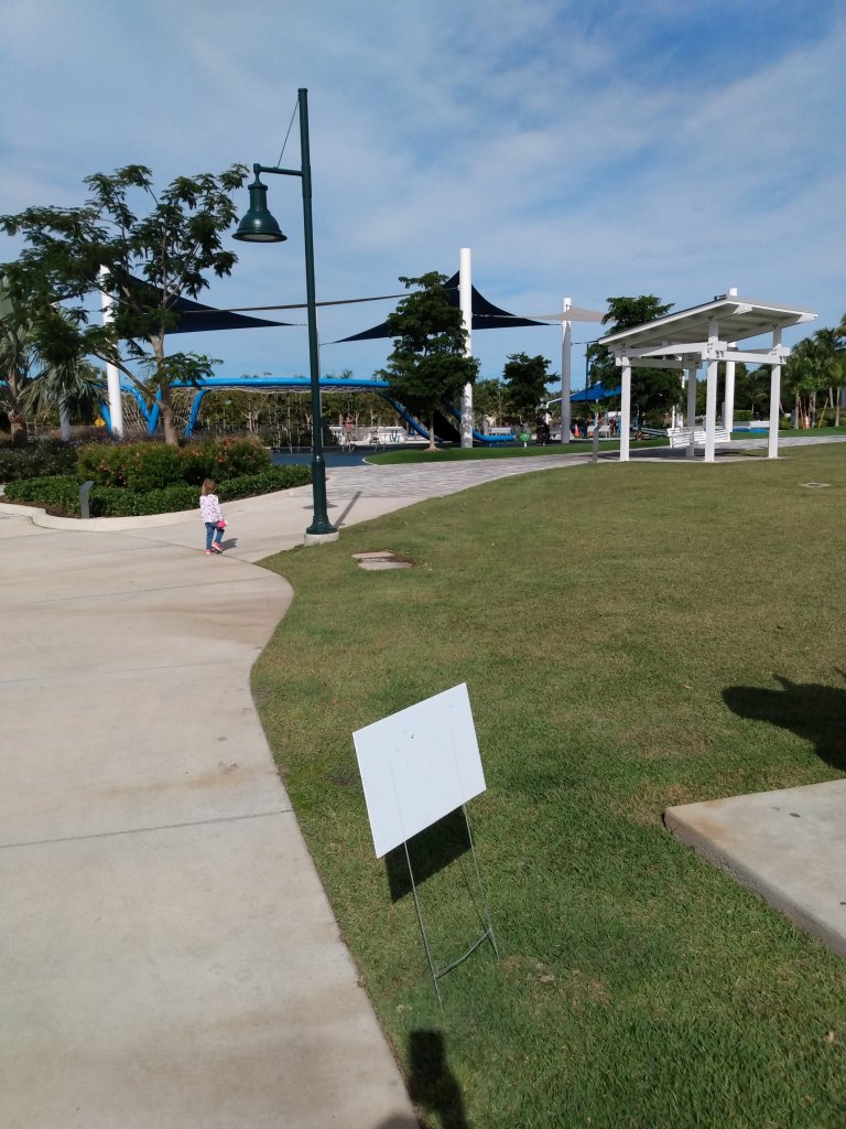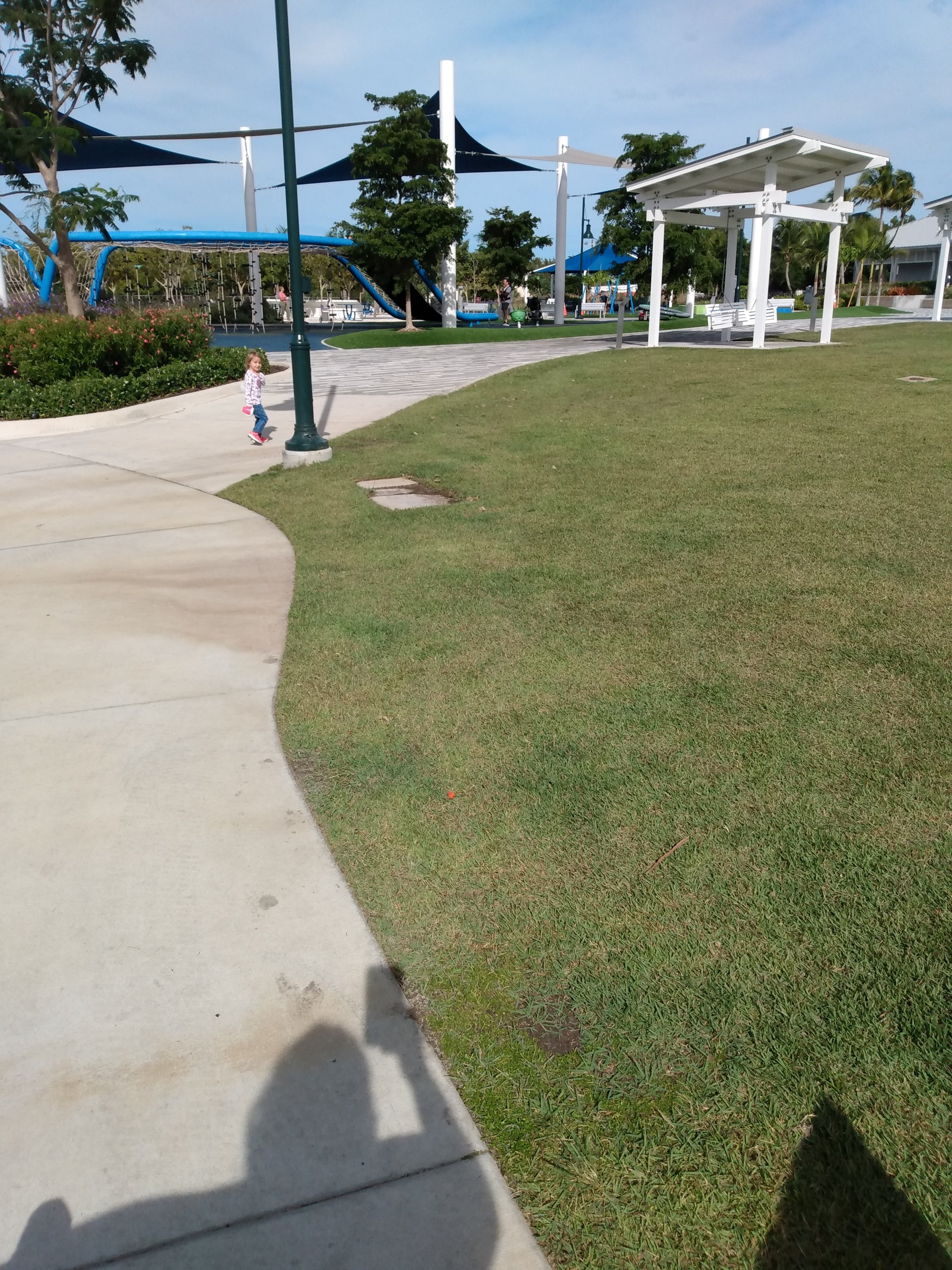 All the while we hear the planes roaring and taking off from the nearby municipal airport. After finishing our walk we head to one of the play areas hidden off one of the walking paths.